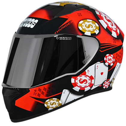 Thunder D6 Decor is an aerodynamic designed full-face helmet with mirror visor and product features like higher impact outer shell and UV resistant paint, regulated density EPS, dynamic ventilation system with chin and top air vents and hot air exhausts at the back, hypoallergenic and replaceable liner, quick release visor and chin strap. Thunder D6 Decor with mirror visor is available in various sizes and colour options.
